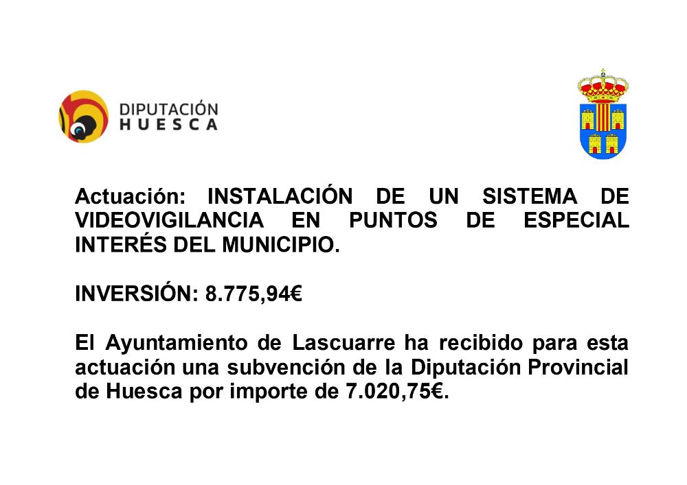 El Ayuntamiento de Lascuarre ha recibido para esta actuación una subvención de la Diputación Provincial de Huesca por importe de 7.020,75€.